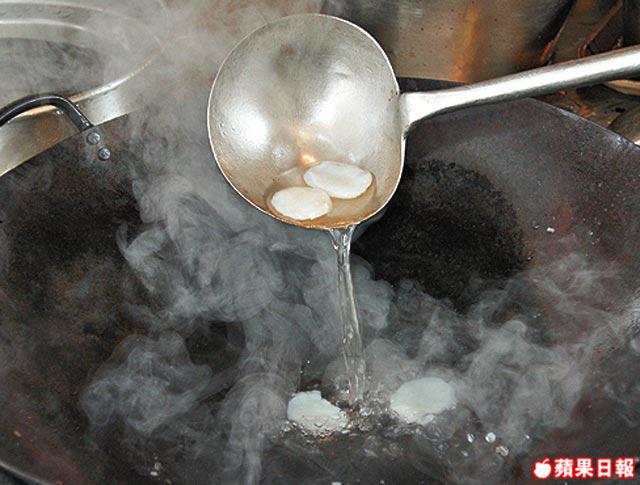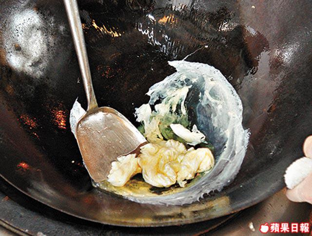 煮蛋白時要順同一方向慢慢推勻,否則會好易推爛。