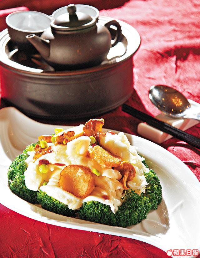 5.燒熱鑊下油,倒入(4),以慢火推炒至八成熟,將雞油菌及帶子回鑊,拌勻上碟。
