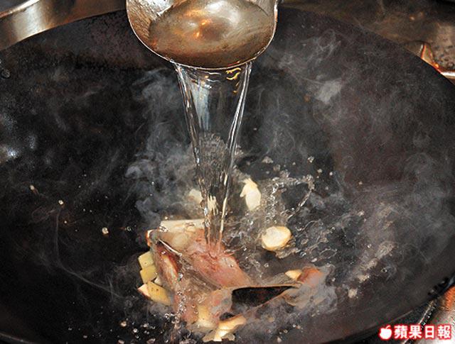 撞入魚頭的水一定要夠滾熱,煲出來的湯顏色才夠白。