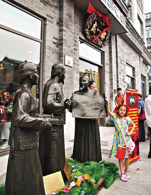 始建於1921年的大北照相館經常為國家領導人拍照,昨日在店內展出前門大街的舊照,跟新的來個對比。不過,老字號雖然提供拍攝懷舊花邊黑白照的服務,但已不用菲林相機,改用數碼相機了。照相館對面的清真食品店齋盛月更老,創於清亁隆四十年(1775年),推出「西式腸系列」,店內擠得水洩不通。前門大街的食店生意更旺,像亮出「天下第一樓」招牌的全聚德;還有因光緒皇帝光臨過而改名為「壹條龍」的涮羊肉店,都是客似雲來。