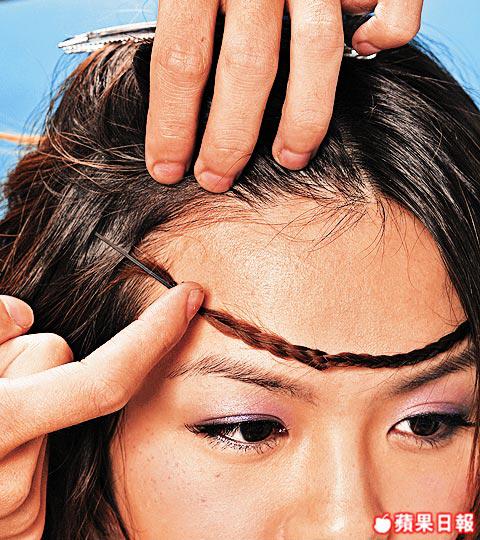 2.於太陽穴位,找出小束頭髮,紮成擯辮。