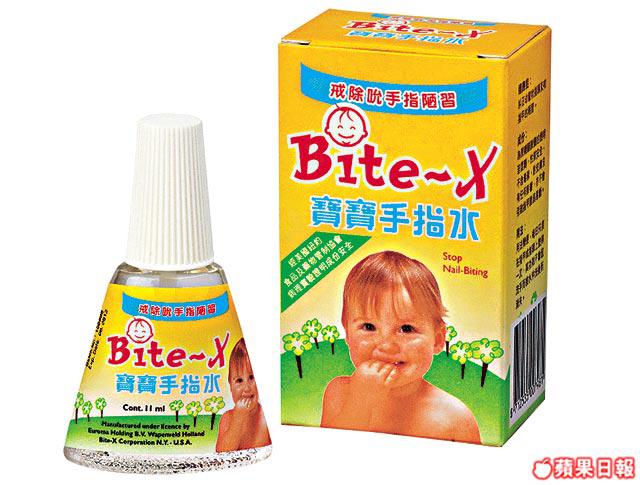 「Bite-X寶寶手指水」為透明液體,經美國紐約食品及藥物管制協會病理實驗證明安全。成份是蔗糖醋酸鹽,味苦澀,每日用一次。