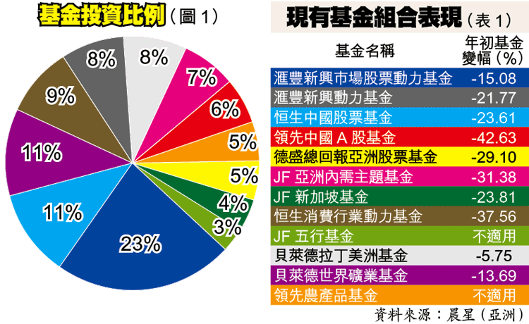 她買入基金後疏於管理,亦沒有留意其表現,及按市況而調配。由年初至今,Ada組合內所有基金均錄得虧損,最勁跌幅超過四成(表1)。