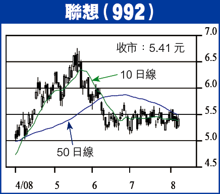 筆者一直推介的聯想集團(992)首季業績中規中矩,純利增長65%,並保持全球電腦銷售市場佔有率7.9%,集團積極推動品牌、新產品及拓展新興市場,均有利保持其市場地位,惟毛利率有下降趨勢,首季業務受地震事件影響料扭曲其營業情況,仍可觀望未來一兩季業務及毛利率表現,暫可中短線持有,待破6元水平。