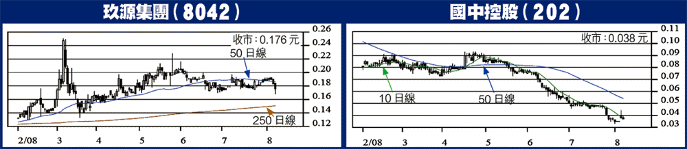 玖源250日線喺0.15元,股價再跌,吼實呢個位兜一番,以08年度15倍預期PE做目標,玖源要見0.24元,潛在回報係半番。