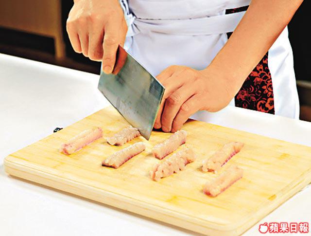 白鱔較多骨,所以要以十字刀法把細骨切斷。