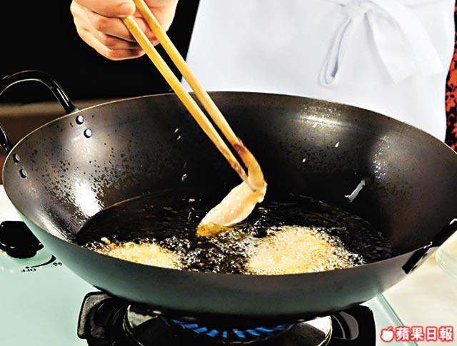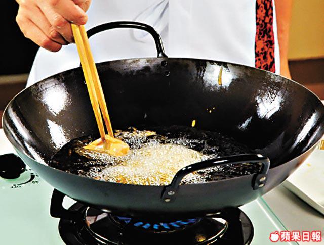 炸食物最重要注重火候,太猛火,外表炸燶,但內裏未熟;火太細,油會滲入食物內。如用炸漿,油一定要多,炸起來漿才不會瀉。而大廚Peter今次在炸漿中加了豉油及豆瓣醬等,故特別「搶火」,所以油溫要暖,火路要中等,才可把魚件浸熟,脆漿又夠鬆化。