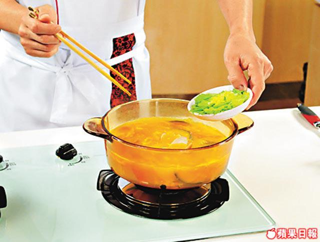 花蛤鮮甜,加入同樣鮮甜的南瓜更加甜上加甜,所以Peter加入清酒,在湯中散發微微清香,減少甜膩感。
