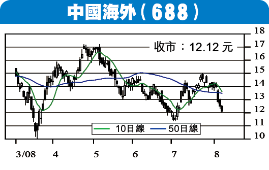 688中國海外 收市:12.12元