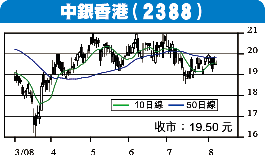 2388中銀香港 收市:19.50元