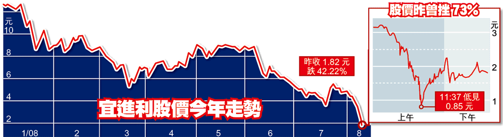 宜進利(304) 昨收報:1.82元 跌幅:42.22
