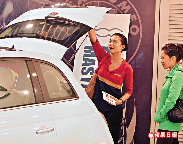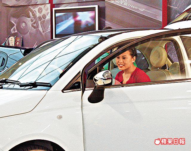 前日下午,碧兒現身灣仔告士打道的AlfaRomeo車行揀車,當時她淡施脂粉、打扮隨意,由一女伴陪同到達,在場車行經紀熱情招待她,但碧兒似早已睇中心頭愛,在一部價值約24萬元、Fiat500型號的白色陳列車前徘徊,見她細心研究車輛,一時竄入車廂揸軚盤,一時又踎低睇車鈴,其間還不慎洩春光。