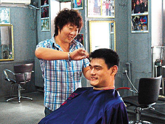 姚明卻是熟客,上星期二上午10時多,入住奧運村前先來剪髮,說翌日要傳火炬,想柴進為他設計一下。「姚明為人有點腼腆、隨和,我說今次是在自己家門口比賽,應該改變形象,剪得兇悍一點、強悍一點。他笑了一笑,說『變化不要太大』。」姚明身高7呎6吋,坐在剪髮椅上差不多要把屁股坐到椅邊,躺下來給柴進剪頭髮。