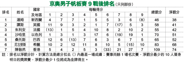 選手:陳敬然 項目:男子風帆第9場 賽果:第7名