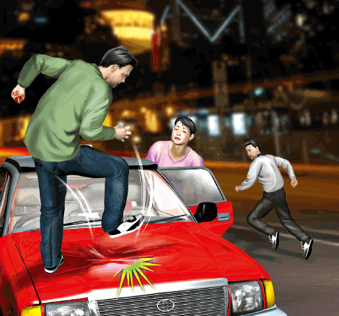 被告停車抹面,事主卻從後箍頸,拳打他的頭、眼及胸部。被告掙扎間弄傷事主,並開門逃離車廂。事主追截不果,返回的士旁,先拳打車尾箱,再攀上車頭不斷跳躍,破壞車身,然後逃去。被告最後報警,拘捕事主,反遭落案起訴。
