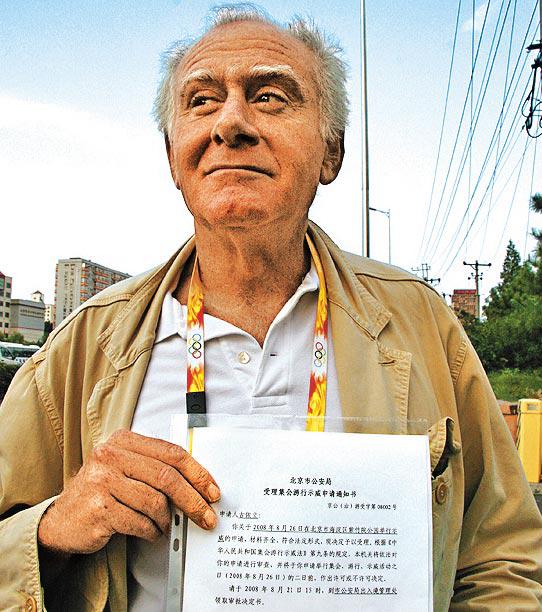自稱是意大利報章《ilGiornale》記者的LucianoGulli昨午也到公安局提出示威申請。身上掛有奧運場內註冊記者證的他說,上周四已來過一次,當時公安局指他資料不全,昨日再來,公安局終於發出公文,承諾後天會發出審批決定書,決定是否批准他下周二到紫竹園示威。Gulli不滿意公安局處理申請的程序,批評對方「太官僚」。對於中國是否享有表達自由,他沒正面回答,只表示要求釋放動物園的大熊貓,牠們是中國的象徵。