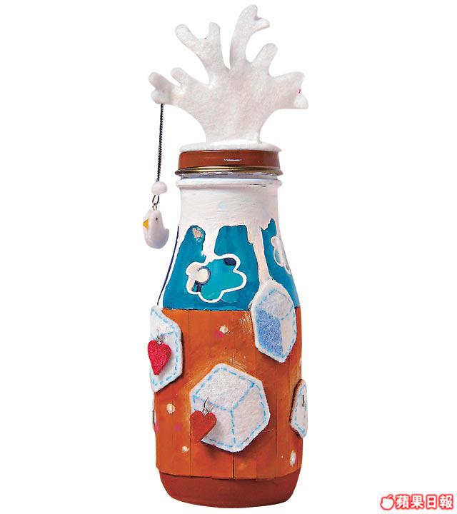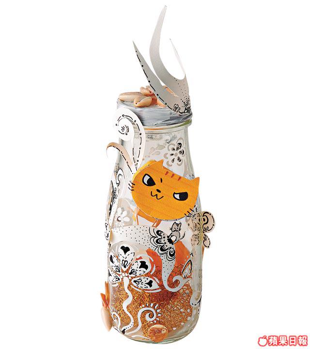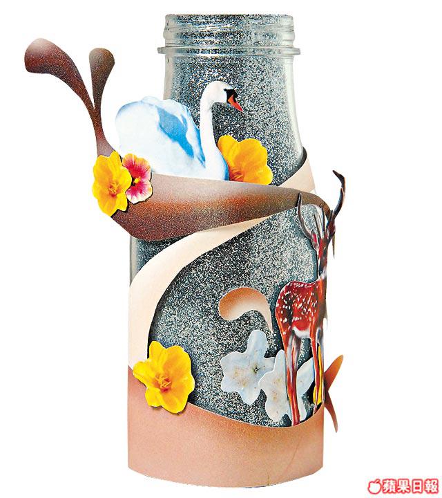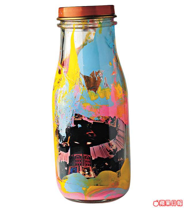 剪貼技術組成立體的靈感海洋,樽內閃沙代表無窮靈感。