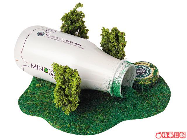 用咖啡樽設計成一片綠洲淨土,表達出操勞過後的一杯咖啡所帶來腦袋寧靜的感覺。