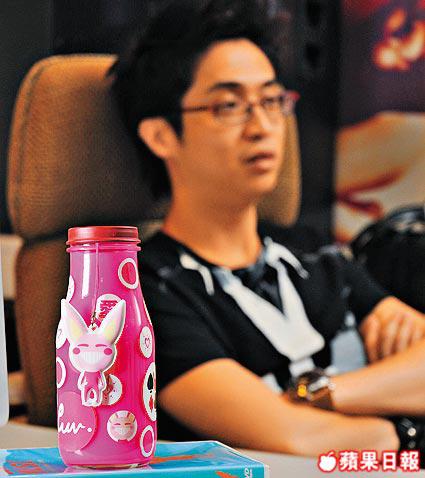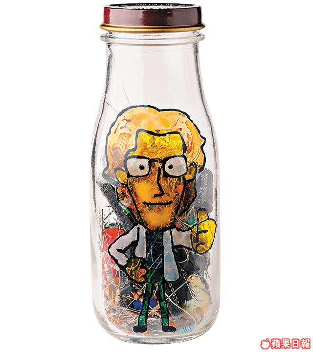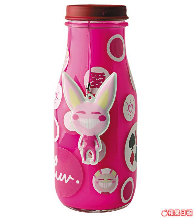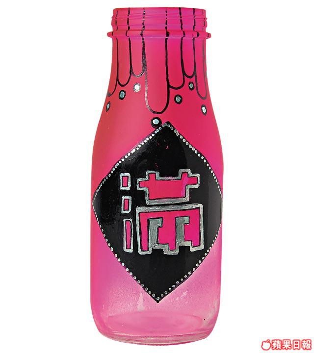 粉紅色愛愛豬並非卡通logo,他是個多媒體創作人,以自己樣子作設計,因為他的人生就是最濃情的體驗。「我喜歡分享不同的愛,在樽身貼上不同關於愛的貼紙,再倒入粉紅色水彩作底色,充份利用玻璃瓶這個創作平台是最好玩的事。」