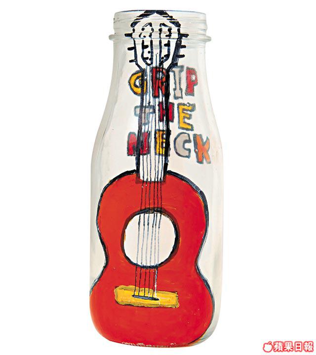 在樽身畫上結他圖案,結他所握位置正好跟玻璃樽所握之處相若,巧妙地帶出同一感覺。「結他也好,玻璃瓶也好,從握住頸部開始感受,直到渴望得到更多。」