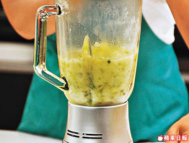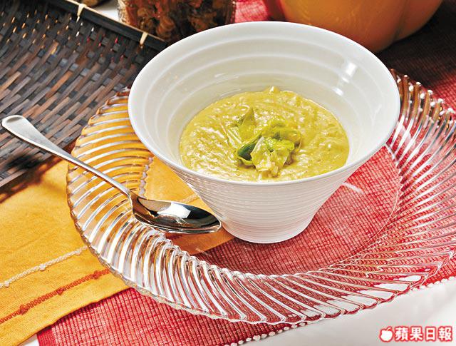 3.然後冚蓋轉中火煮至椰菜軟身,約15分鐘,倒出攤凉,放入攪拌器打成茸。