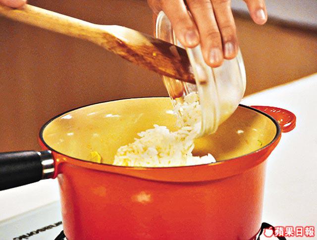 米飯鋪上錫紙才放入焗爐焗,可避免焗亁水份。