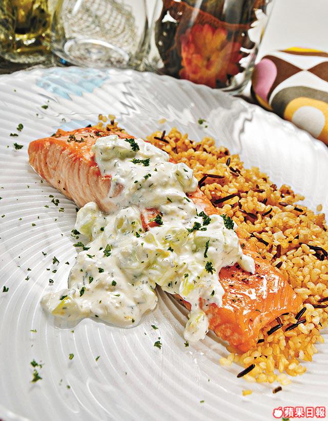 酸忌廉青瓜醬味道清甜開胃,除可以伴三文魚之外,仲可用作配搭雞肉、漢堡包或三文治。