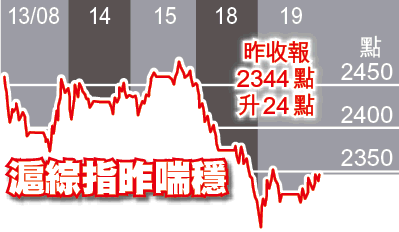 滬綜指收報2344,升24點或1.1%,深綜指報665,升9點或1.4%。