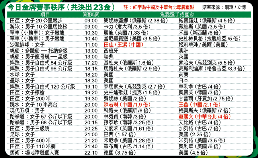 20:00 女子10米高台跳水:陳若琳、王鑫★★★★★