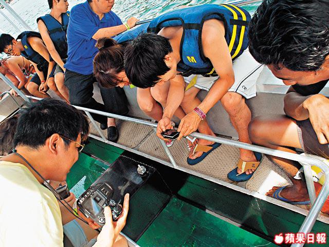 由浮羅交怡島乘船約45分鐘,就可以到位於檳城跟浮羅交怡之間的巴雅島(PulauPayar),若再轉45分鐘船程,可到港人最愛的泰國。小島自從給定為海洋公園後,就成了槍魚、赫米特螃蟹、海星、海葵、石頭魚及魔鬼魚的天堂。甫下船,已可由浮台甲板縫隙看到點點黃黑相間的小魚。這裏的魚仔數量比泰國象島還密集,比馬爾代夫的狼毒。導遊教我們製作「唧唧包」,每人亁了兩支500ml礦泉水,入滿了麵包給魚仔=做「手信」。一顆浪漫丹心下水,未開蓋,群魚已啄你催你餵食,咬下來雖然不痛只癢,但遮住我個鏡頭就乜都影唔到!「我唔玩喇!我要餵鯊魚呀!」感謝偉大的台灣妹,雖已被亂竄的魚群嚇死,叫聲震天但面對鏡頭還擺V字手勢。可惡的朋友們還將麵包塞到彼此的褲子、裙子內,魚仔當然照跟,比餵鯊魚更恐怖、比玩truthordare更賤,我還是站遠一點好。