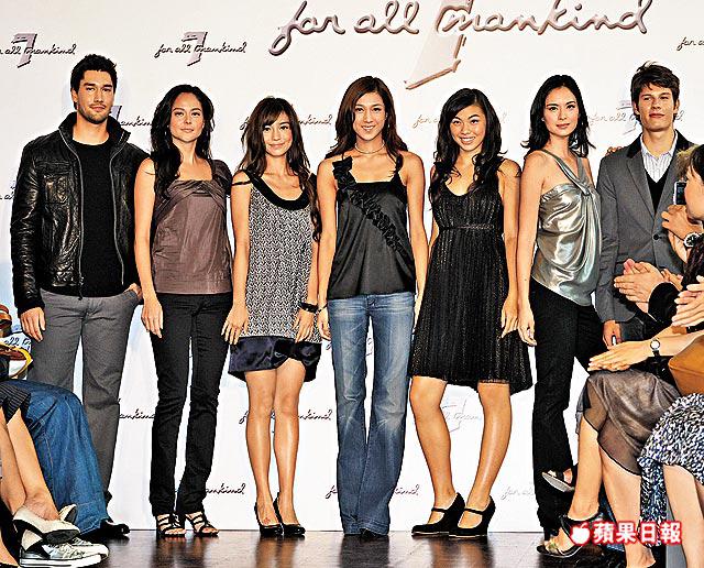 美國牛仔褲品牌7forAllMankind昨日在中環舉行08秋冬時裝騷,鍾嘉欣、Angelababy、AnaR.、翻版關之琳Jocelyn和王敏德女兒王曼喜齊齊行騷,眾人中以鍾嘉欣最高,五呎八吋的她,穿上四吋高跟鞋,比Angelababy高出半個頭,鍾嘉欣更獲品牌高層搭膊歡迎。