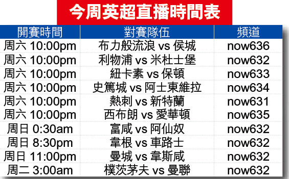 英超:史篤城vs阿士東維拉