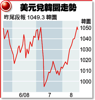不過,美元回軟並未對韓圜、泰銖和菲律賓這三隻弱勢貨幣帶來支持,韓圜和泰銖早段分別跌至七周和九個月低位。菲律賓降低當地今年經濟增長,披索亦跌至個半月低位。但市傳南韓央行入市干預,刺激韓圜止跌回升,尾段報1049.3兌1美元。滙商料南韓政府昨曾入市拋售7至8億美元。儘管泰國央行及菲律賓央行據報亦曾入市,但無法完全收復失地,泰銖和披索在亞洲尾段分別跌0.2%及0.3%。