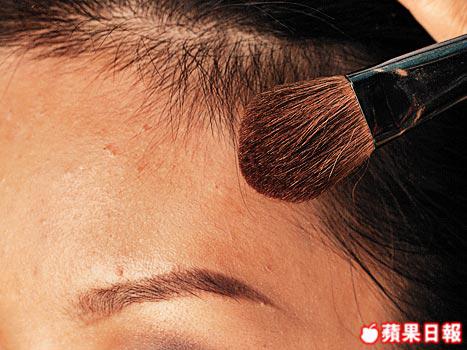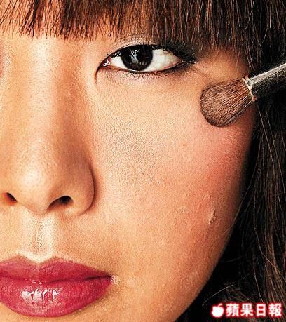 陰影部份則着重於臉部的四個角落,下顎兩側及兩邊髮際則可以深色胭脂或碎粉掃上陰影,讓臉形顯得更圓。