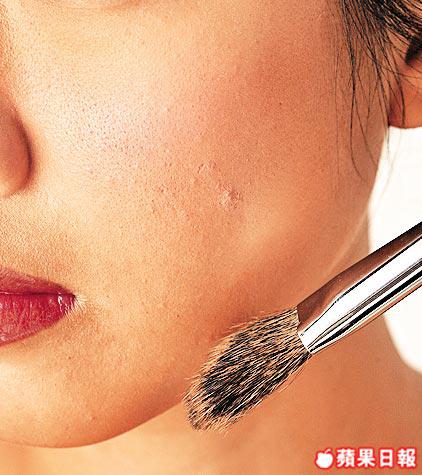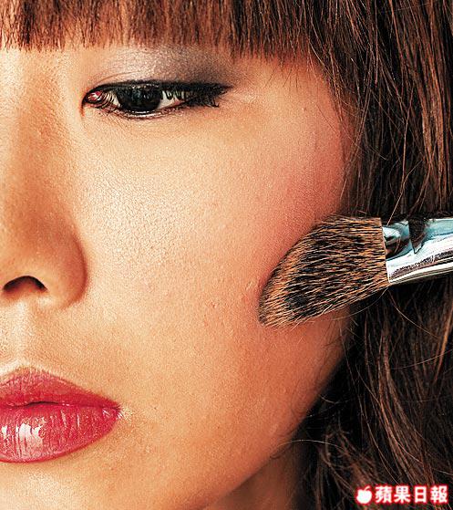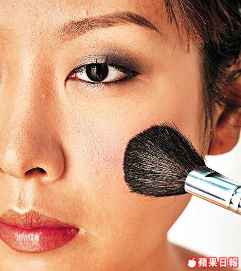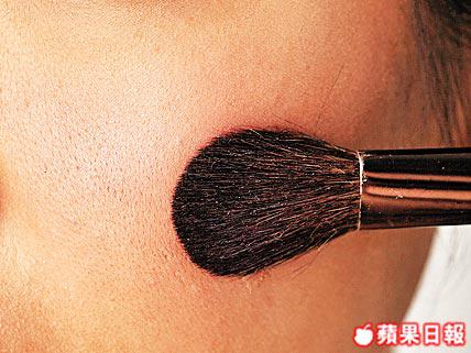 把胭脂以打斜式由下至上掃於顴骨凸出位。