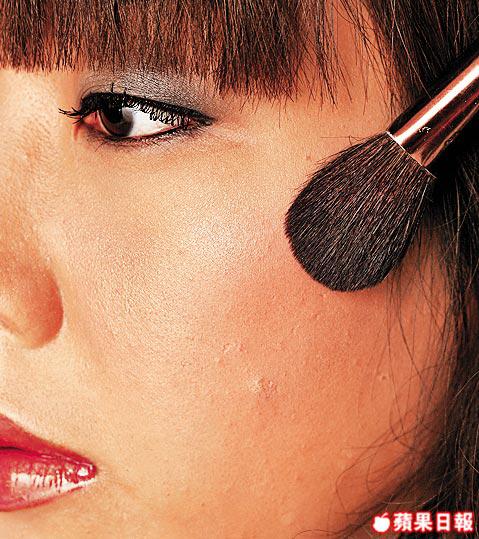 以深色胭脂或碎粉打斜由下至上掃勻作陰影。