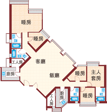間隔:5房2廳(雙套房)另雙工人房