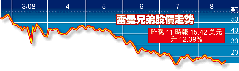 憧憬獲同業入股的消息,刺激雷曼股價昨一度急升15%,其他金融股亦受帶動上揚。摩根大通昨最多升5.5%,美銀、花旗、美林和大摩股價,均曾升逾4%。