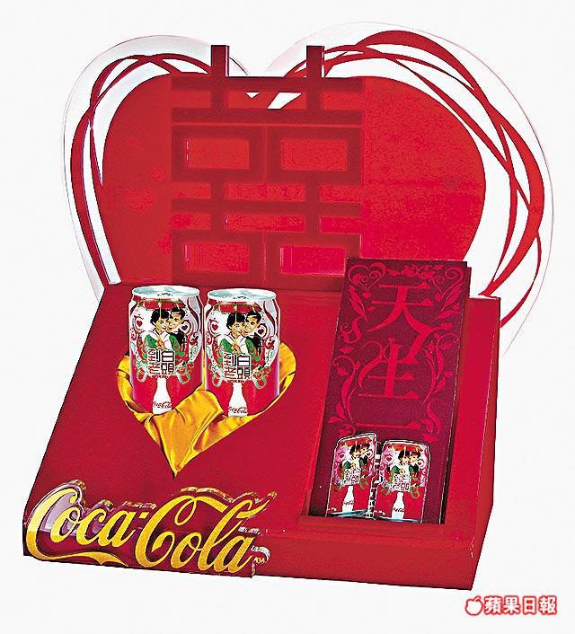 可口可樂發言人稱,天生一對婚宴罐裝的設計中西合璧,以中國剪紙藝術顯示中國濃情,並在罐上繪上一對西方情侶,在雨中撐着紅傘進行中式傳統婚嫁儀式,以及印上「白頭到老」祝福字句。鴻星的婚宴率先採用該款婚宴可樂罐。
