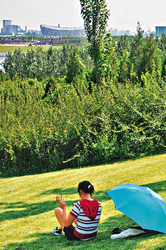 【《蘋果》記者蔡元貴北京直擊】奧運進入尾聲,激烈的競賽節奏開始放緩。昨日天朗氣清,逾萬人走出場館走出爭名逐位的緊張氣氛,來到奧林匹克森林公園身心大釋放。這個全北京最大的城市公園,開放以來受本地與外國遊客讚賞,不過也有很多遊客提出需要改善的意見。