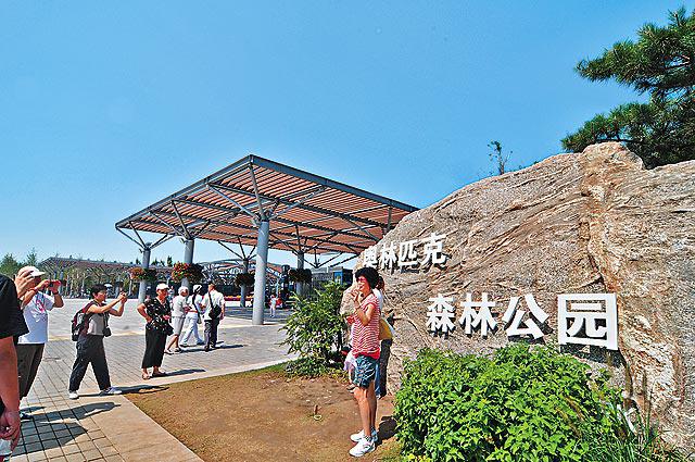 「這裏每天都有上萬人來,雨天都很多人。」一名引導員說。公園的60位引導員不過是人肉流動諮詢處,方便人問路,不是給遊客講解導賞的人員。從地鐵8號線森林公園南門站步出,就是公園南園的入口。大門的廣場很容易找,因為沙啞的揚聲器播放着奧運主題歌曲很刺耳。