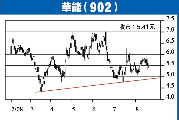 華能國際(902)上周四收5.41元,跌1.6%。股價初段低見5.27元,其後反彈回5.41元收市,日線圖出現錘頭,具備反彈條件,如大市回升,股價先試5.68元,破位上望6元關。