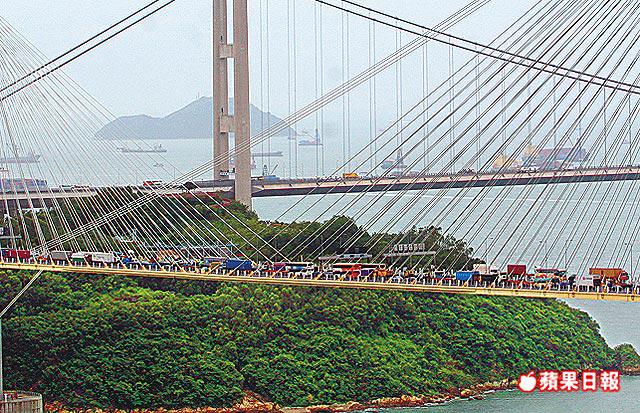 【本報訊】葵涌貨櫃碼頭出現颱風「鸚鵡」後遺症,近千部貨櫃車昨日在風暴過後趕往交收貨櫃,導致貨櫃碼頭對開往九龍市區方向出現大塞車,交通幾乎癱瘓,車龍一度綿延10公里至汀九橋,直至下午車龍才逐漸消散。