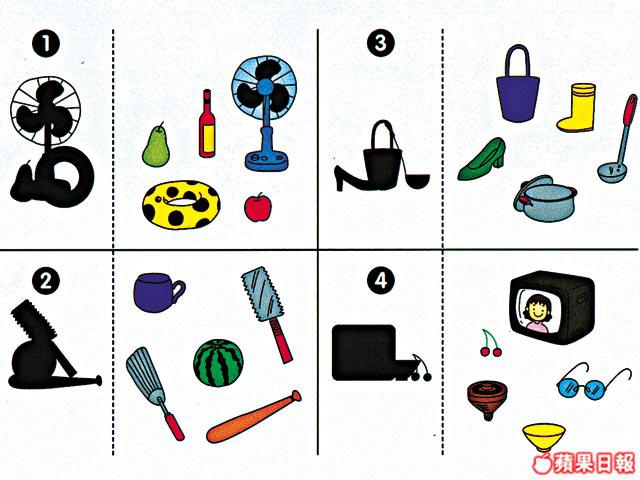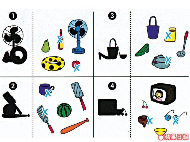 大門大喜歡打架,就是不愛做功課。你能幫幫他完成暑假作業嗎?只要在右邊的圖案找出剪影中包含的圖案就可以了。
