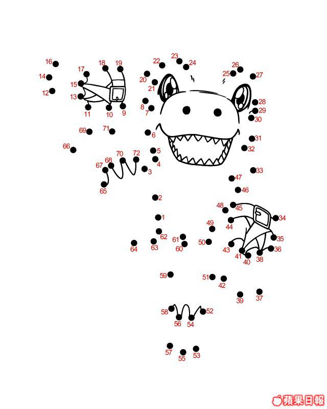 作為數碼暴龍的主人,應該對自己的拍檔非常熟識,快把以下的圖案按數字順序連結起來,看看是誰。