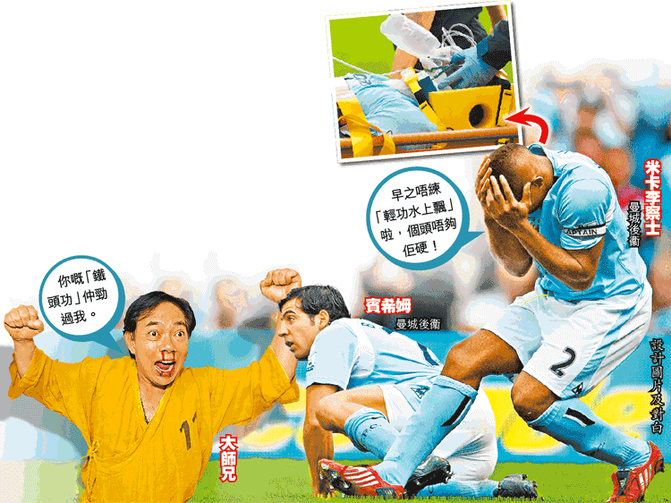 如果腳頭重嘅懷斯係「少林大力金剛腿」嘅話,我估賓希姆一定係「鐵頭功」。呢位曼城以色列中堅,周日喺聯賽大勝韋斯咸3:0場波,連隊友都唔放過;喺一次高空爭奪戰中,一嘢頂落米卡李察士個頭度,結果後者即時K.O.暈咗,仲要吸住氧氣筒被抬離場,我求大俠話賓希姆一定係「大師兄」!