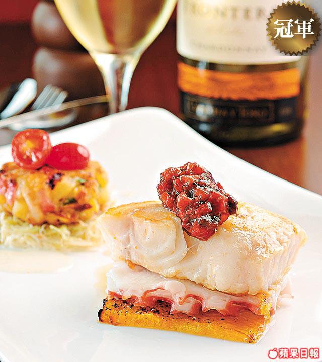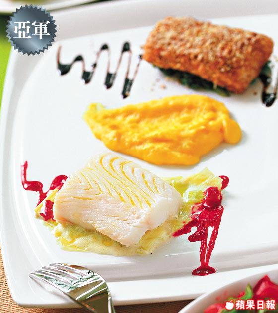 銀鱈魚肉清蒸,腍得來保持鮮味,另一塊鱈魚則採用榛子碎包住,再原件放入爐焗,味道濃郁,榛子碎有咬口。