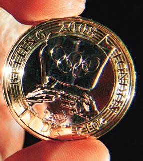 倫敦市長約翰遜(BorisJohnson),周二在倫敦展示史上首枚奧運交接紀念幣(圖)。該面值兩鎊的紀念幣,象徵奧運會主辦權由北京轉交給下屆主辦城市倫敦,並紀念英國64年來主辦的最重大運動盛事。紀念幣分為金幣和銀幣,是首枚帶有倫敦2012標誌和奧運標誌的法定貨幣。