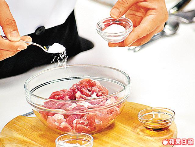 1.豬柳洗淨後用刀略拍兩面,用鹽及胡椒略醃。