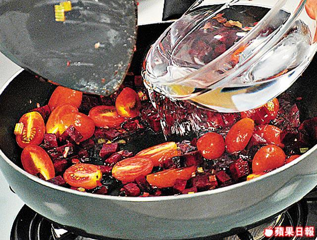 2.唐芹切粒;車厘茄開半;紅菜頭去皮切小粒。